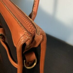 Blue and Tan Dooney & Bourke Handbag. Vintage pebbled leather. Minor Wear. Inside is very clean. Made in USA. Missing shoulder strap. (Sorry I couldn’t find it). If you own other Doonies, you can swap out a strap from another bag. Roughly 12.5 X 9 X 3.5. Preowned in excellent condition.