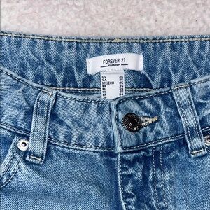 Embrace a chic and relaxed style with these Forever 21 blue jeans, showcasing a fashionable flare and wide leg silhouette. The distressed detailing adds a modern edge, perfect for casual outings. Enjoy the comfort and timeless appeal of these versatile jeans.