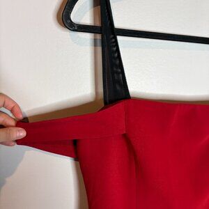 5 a 7 Cinq a Sept red Black Off Shoulder Anova Mini Cocktail Dress