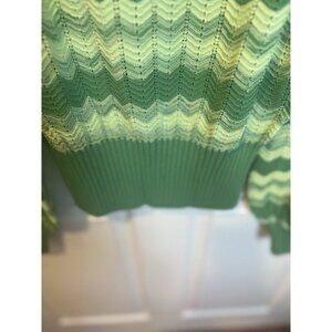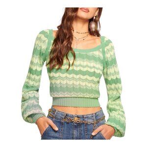Ramy Brook Briar Cropped Sweater Size XL Green 100% Cotton Wave Knit Square Neck