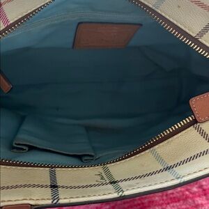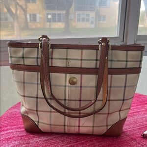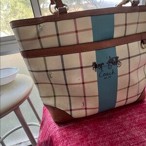 COACH HERITAGE TATTERSALL bag featuring elegant brown leather accents. Perfect for everyday use.