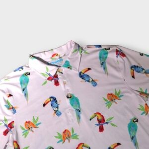 Chubbies The Birds Of Polodise Performance Polo Shirt Medium White Parrot Toucan