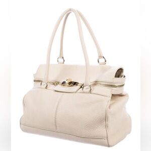 Max Mara Neutral Leather Top Handle Bag | Gold Hardware | Made in Italy
