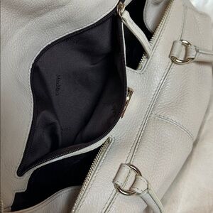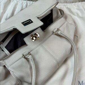 Beautiful Max Mara Top Handle Bag crafted from smooth neutral leather with elegant gold-tone hardware. A timeless, structured silhouette that works perfectly for everyday wear or polished occasions.