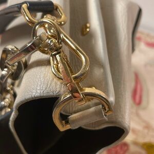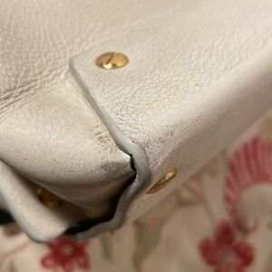 What a well made mini leather bag with black flap over onto cream surface! The cream part- especially around the bottom edges are very loved. But structurally - pretty sound. The gold hardware lends itself to several different usages.