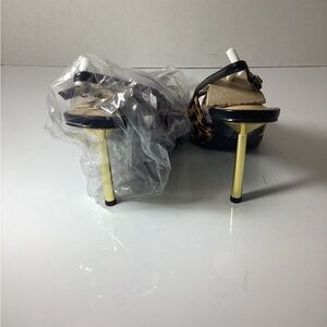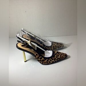 Step out in style with these chic leopard print slingback heels. Featuring a striking gold stiletto, these shoes are perfect for any occasion. Pointy toe