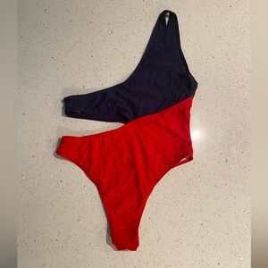 Chic Blue and Red One-Shoulder Swimsuit