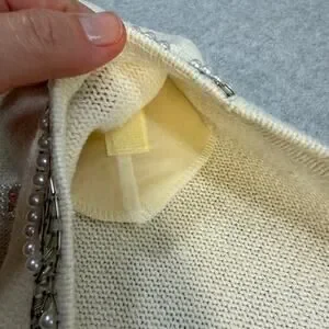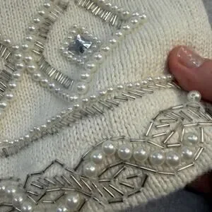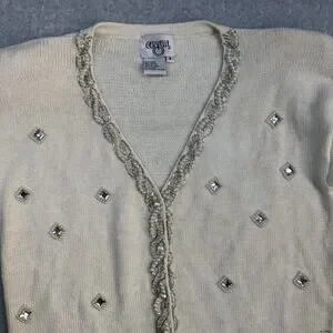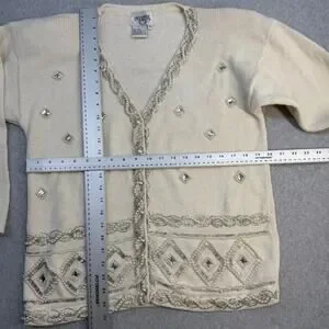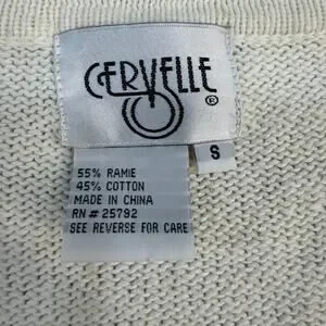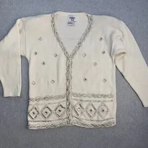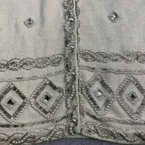 Cervelle Women's Sweater Cream S Ramie Cotton Beaded Embellished Rhinestones