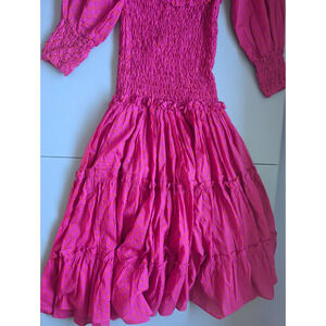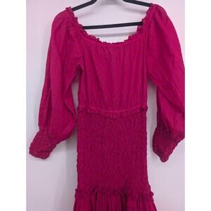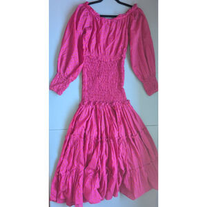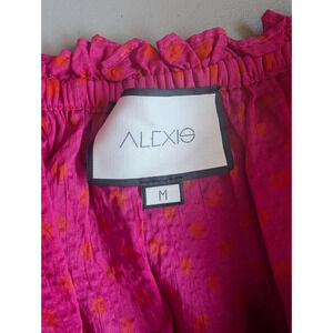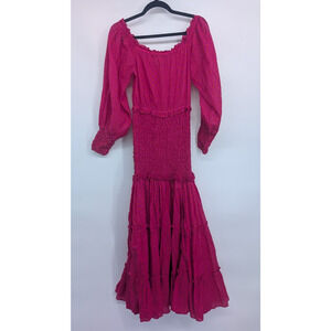 NWOT Alexis Thalssa Off The Shoulder Shirred Maxi Dress Sz M Fuchsia Dot #1H451
