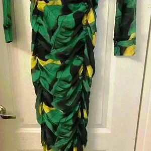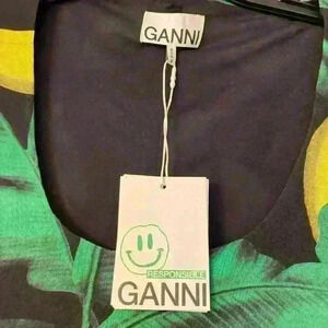 GANNI Tropical Ruched A-Line Midi Dress
