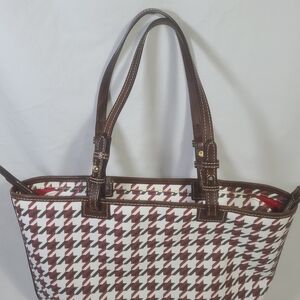 Dooney & Bourke Houndstooth Tote Bag - Red and Brown