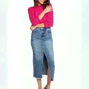 NWT CELEBRITY PINK Denim Front-Slit Frayed-Hem Midi Skirt size 3/26