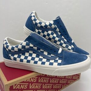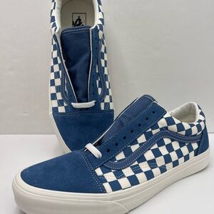 Iconic Vans with a bold blue and white checkered design. Ideal for everyday style.