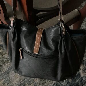 Two Vintage Sag Harbor vegan leather shoulder bags.