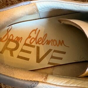 Comfortable yet stylish Sam Edelman Reve women’s size 9. Tan and cream, velcro straps. Pre owned condition. Smoke free pet free home.