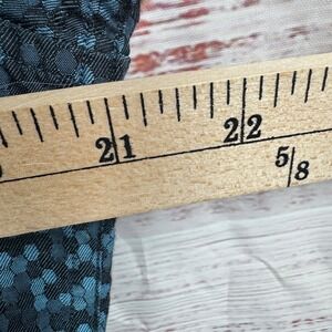 Robert Graham short sleeve button-up shirt in size small featuring a striking blue geometric pattern. The collar and inner placket reveal a vibrant, multi-colored abstract print, adding a unique flair. This shirt is crafted from 100% cotton for comfort and breathability.