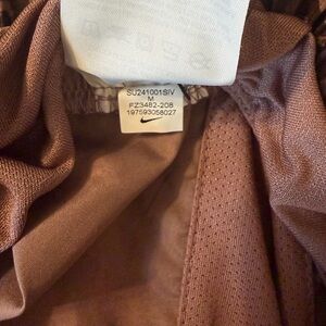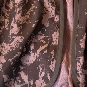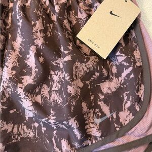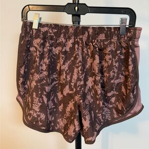 Women’s Nike Athletic Dri-FIT shorts in a Brown/Smokey Mauve abstract pattern. Comfortable fit. Perfect for sports and active wear!