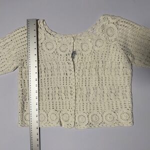 ATTITUDES by Renee Cream Crochet Knit Cropped Sweater Cardigan Bolero Jacket S