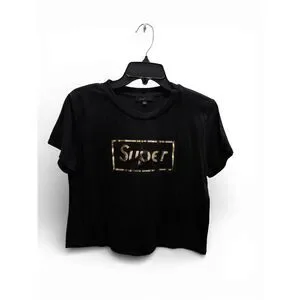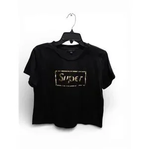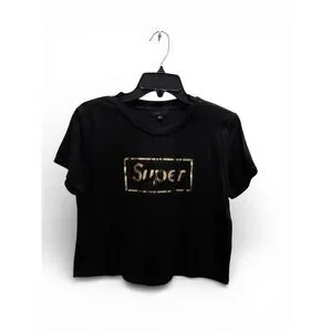 Black Graphic Crop Tee • “Super” Logo • Streetwear Vibes • Size L