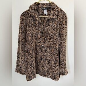 Sag Harbor Brown Black Paisley Unique Woven Textured Button Up Shirt Women’s 12