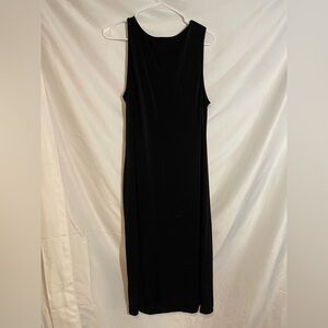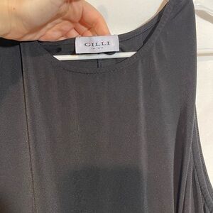 This sleek black sheath dress by Gilli features a sophisticated scoop neckline and a sleeveless design, perfect for a cocktail night out. The midi length and fitted silhouette offer a chic and timeless appeal, making it a versatile addition to any wardrobe.