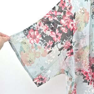 Womens Mint Blue Floral Print Sheer Kimono Lightweight Boho Festival Beachy