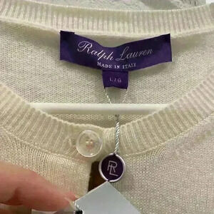 NWT RALPH LAUREN PURPLE LABEL | 100% Cashmere Cardigan Cream | Sz L MSRP$1450