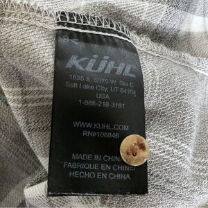 Kuhl Womens Plaid Flannel Shirt Sz XL Button Down Long Sleeve Gray Grunge