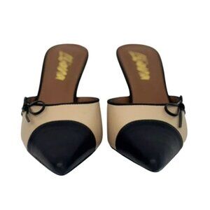 Chic and timeless, these slingback heels feature a sophisticated two-tone design with a pointed toe and delicate bow accent, perfect for elevating formal attire.