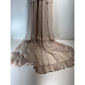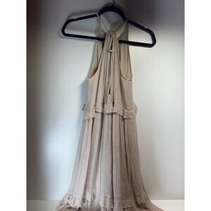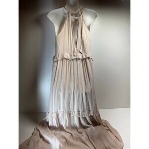 Listicle Textured Woven Halter Maxi Dress Sz Large Tiered Ruffle Festival Boho Beige Gauzy