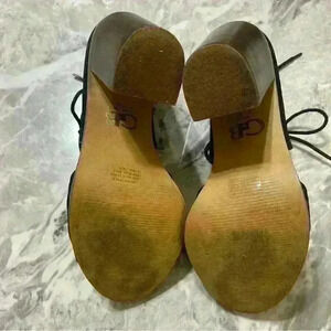 Gianni Bini Shoes Womens Size 9.5 Black Block Heel Lace Leather Peep Toe Cutout