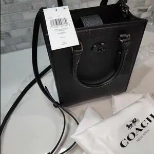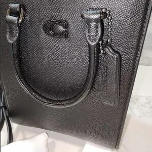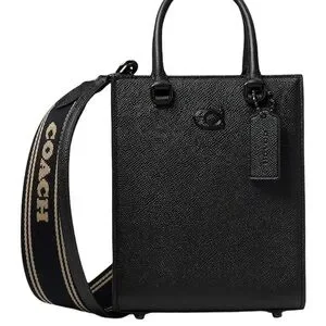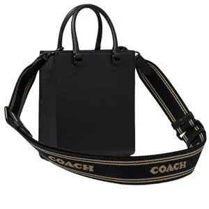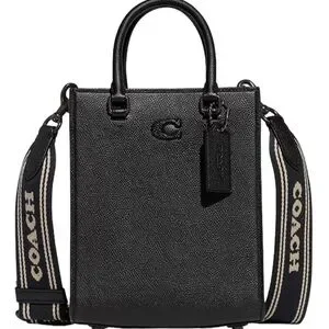 NEW! COACH Unisex Tote 16 In Crossgrain Leather Shoulder Bag Crossbody Black