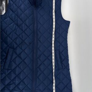 Quilted Navy Blue Long Vest Women's Size L Stand Collar Zip Pockets