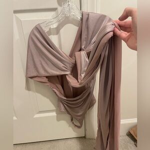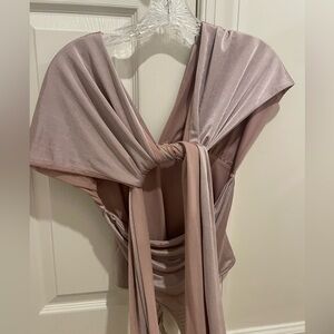 Mauve body suit that is incredibly versatile. Can be worn many different ways by tying the long straps differently. Such a fun bodysuit! Only worn twice.