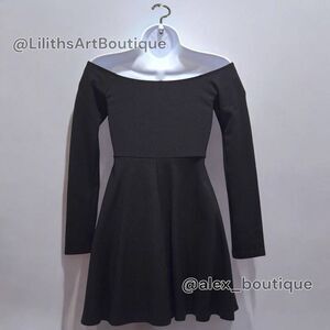 ☆Off the shoulder straight neck, long sleeve padded chest high waist seam a-line skater mini dress.