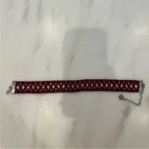 Dark red and silver velvet lace choker necklace.