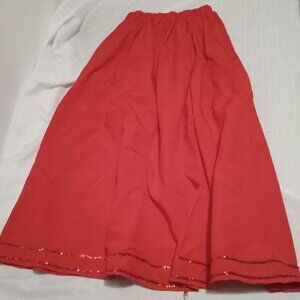 Beautiful long red skirt with sequins at the bottom, made of cotton and polyester, non-stretch, Small