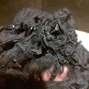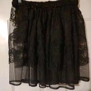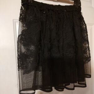 🕷️🖤🕷️ Beautiful Handmade Black Beaded Floral Ribbon Sheer Organza Skirt - M