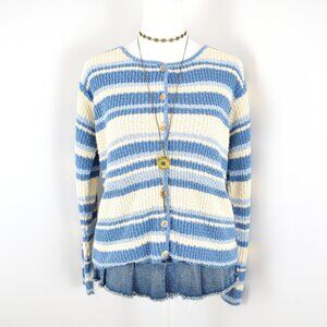Vintage 90s Y2K Blue & Cream White Striped Knit Long-Sleeve Button-Up Oversized Cardigan Sweater
