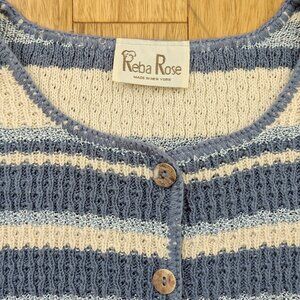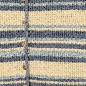 VTG 90s Y2K Blue & Cream White Striped Knit Long-Sleeve Oversized Cardigan