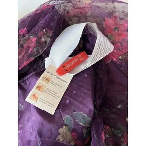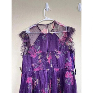 Mac Duggal Leena Cap Sleeve Floral A Line Dress Pleated Dot Tulle Womens Size 8