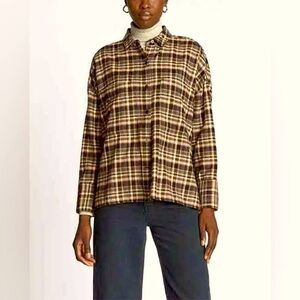 NWT Everlane Boxy Button-Down Plaid Soft Flannel Shirt, Oversized, Size Small