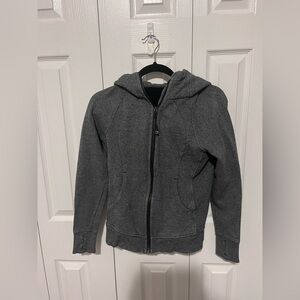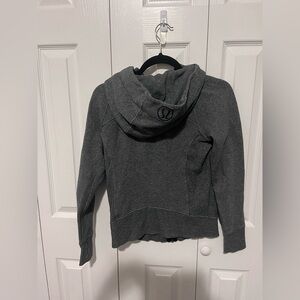 Size 4 Lululemon Scuba Hoodie in heathered grey. Size tag says L60416. Good condition, gently worn.