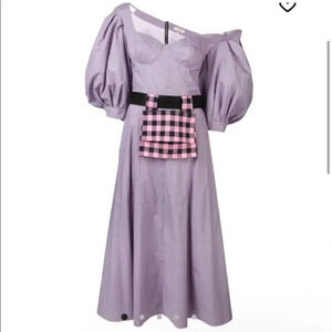 Natasha Zinko Women's Purple Checkered 100% Cotton Midi Dress US8