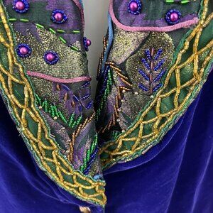 Victoria's Secret Purple Velvet Jacket vintage Beaded Sequins Size S Metallic