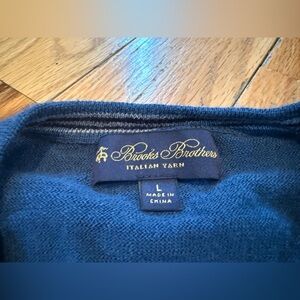 Brooks Brothers Italian Yarn 100% Merino Wool vneck lightweight sweater, men’s size large. Navy Blue. EUC. No rips, holes, stains or odors. Please see photos for item details/dimensions. Some photos may appear different in color due to lighting. Ships from smoke-free home.