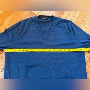 Brooks Brothers Sweater Mens Size L 100% Wool Italian Yarn Pullover V-neck Blue