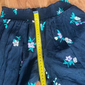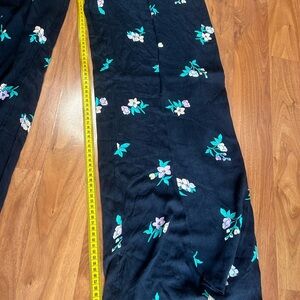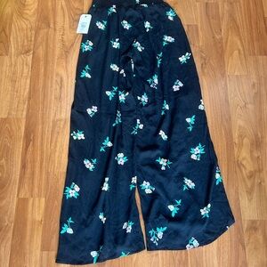 These Billabong wide-leg pants feature a striking black base with delicate green floral prints, offering a breezy and elegant silhouette. The lightweight fabric and high side slit enhance movement, making them perfect for any occasion.