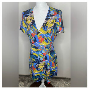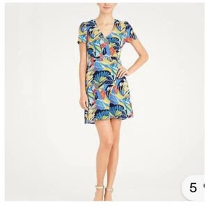 J. Crew Mini Faux Wrap Dress Short Sleeve In Blue Floral Print Sz 10