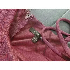 Elastic sheer striped waist alternating sheer and burgundy material.